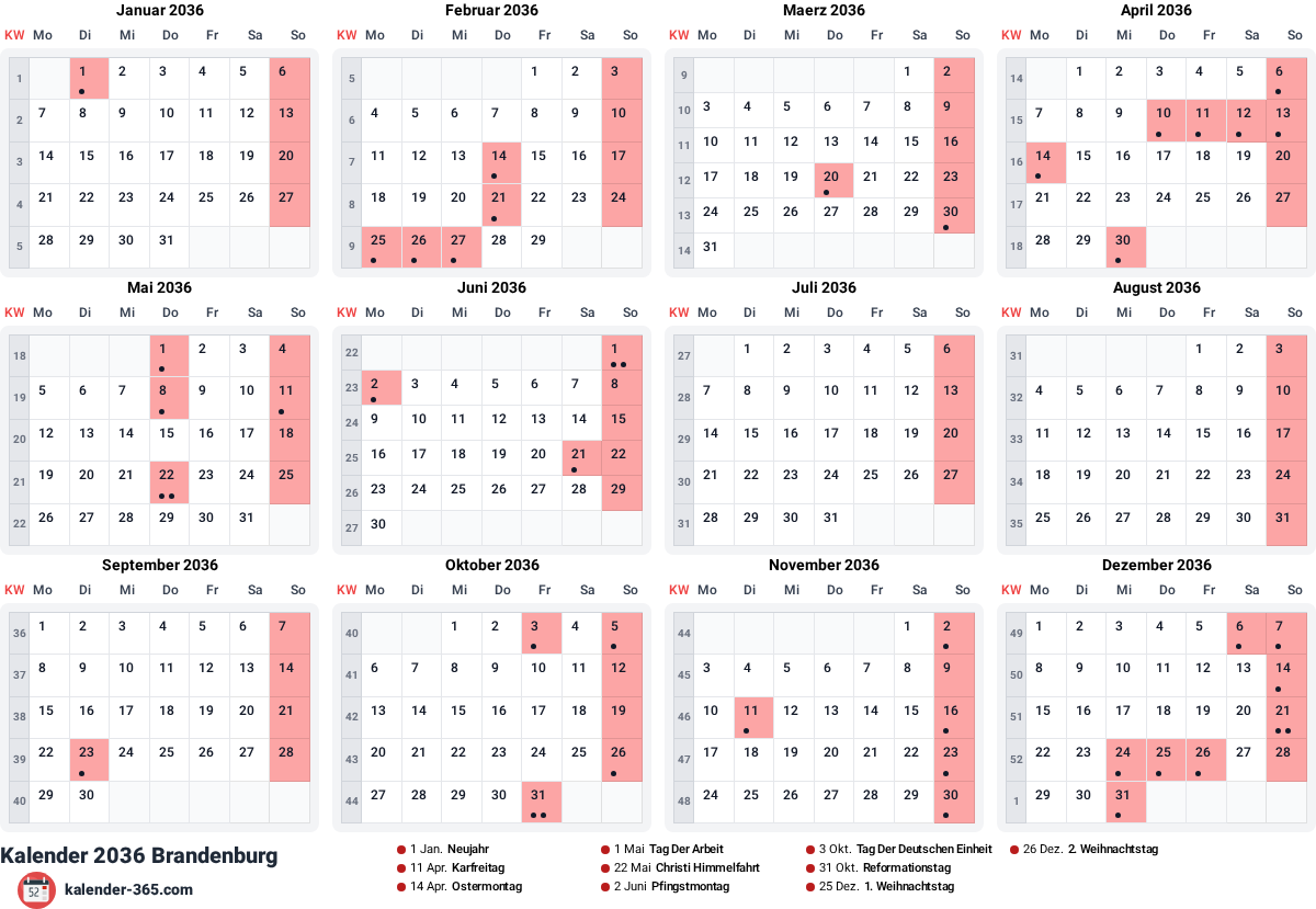 Kalender 2036 Brandenburg